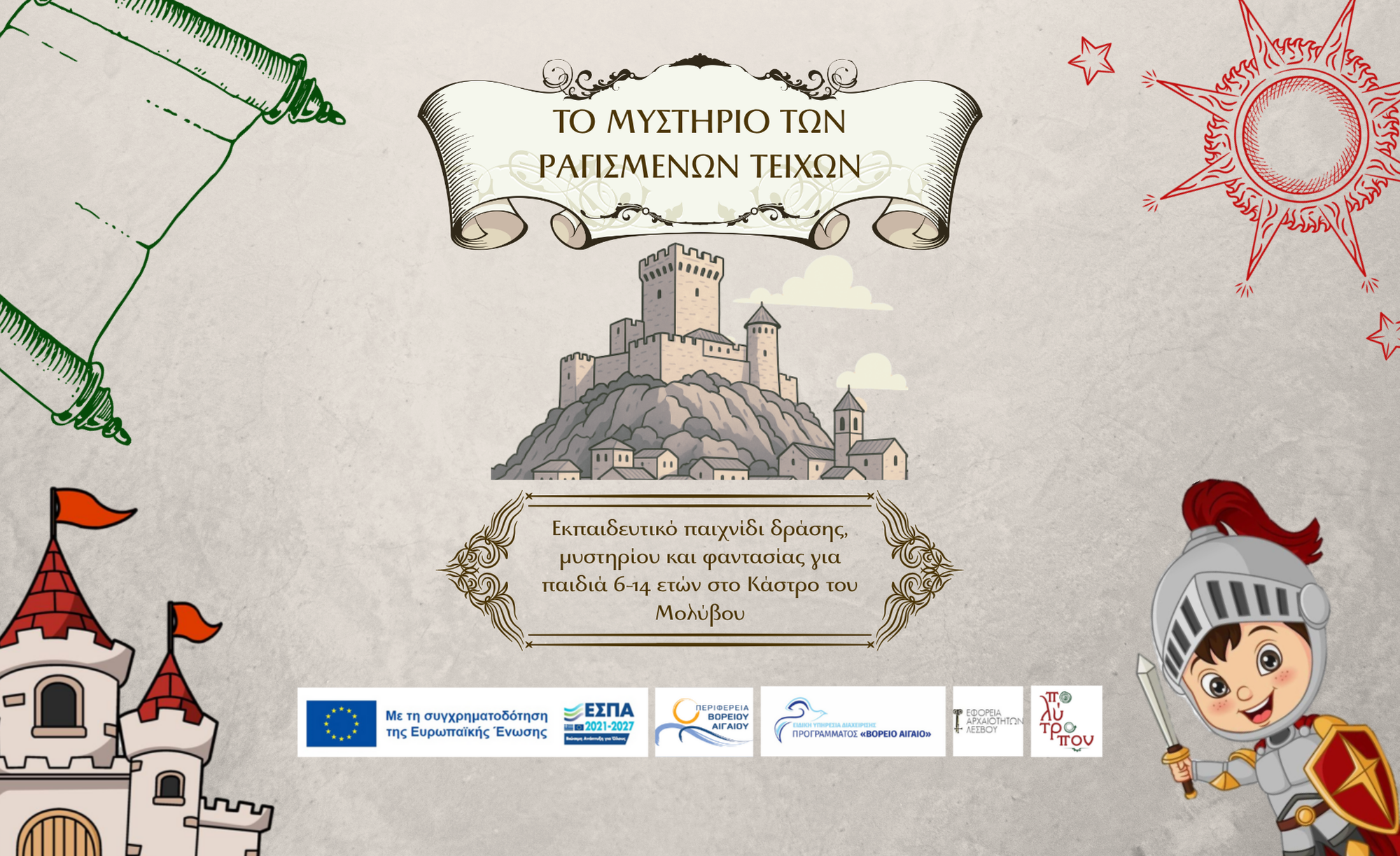 Η Εφορεία Αρχαιοτήτων Λέσβου του Υπουργείου Πολιτισμού σε συνεργασία με το Πολύτροπον, στο πλαίσιο υλοποίησης του έργου «Αποκατάσταση πύργων Π7, Π8 και μεταπυργίων Μ6-Μ7-Μ8 και Μ8-Μ9 μεσαιωνικού κάστρου Μολύβου», ΕΣΠΑ 2021-2027 της Περιφέρειας Βορείου Αιγαίου, πρόκειται να πραγματοποιήσει βιωματικό εκπαιδευτικό παιχνίδι δράσης, μυστηρίου και φαντασίας στο κάστρο του Μολύβου με τίτλο «Το Μυστήριο των ραγισμένων τειχών στο κάστρο του Μολύβου».